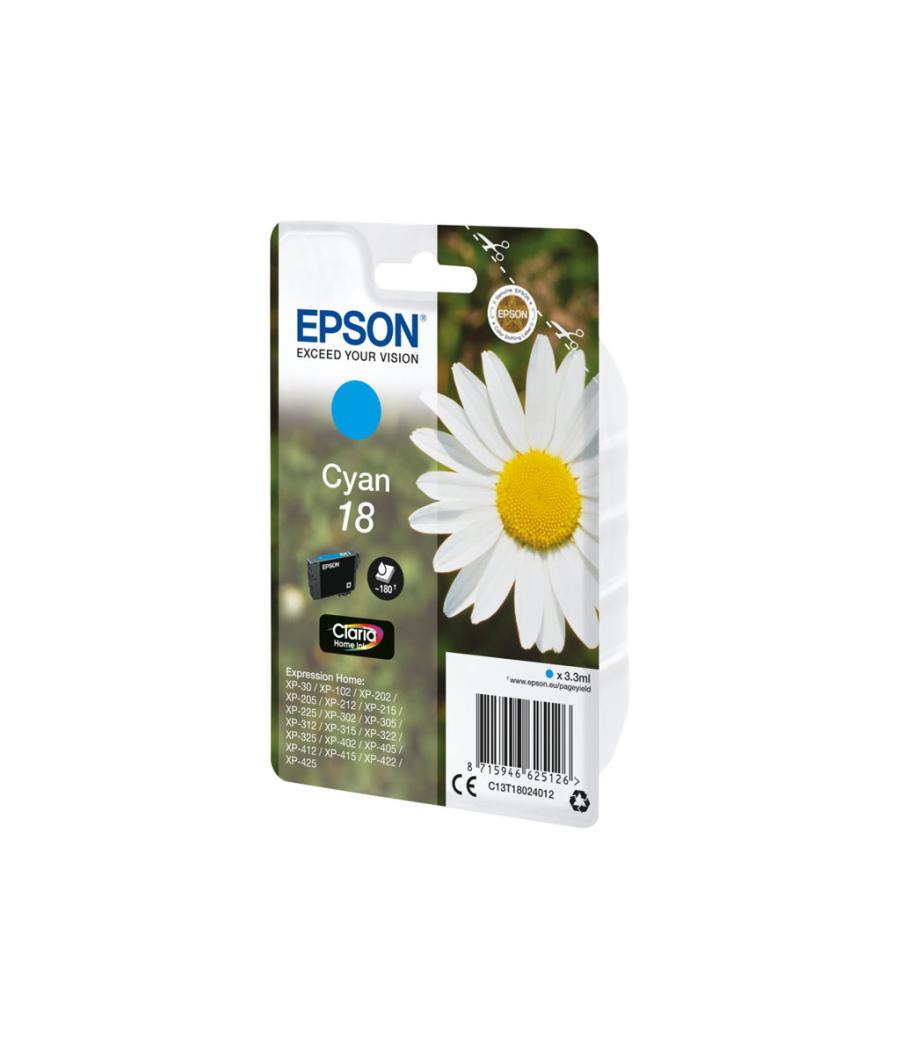 Epson 18 - 3.3 ml - cyan - original - emballage coque avec alarme radioélectrique/ acoustique - cartouche d'encre - pour Expression Home XP-212, 215, 225, 312, 315, 322, 325, 412, 415, 422, 425