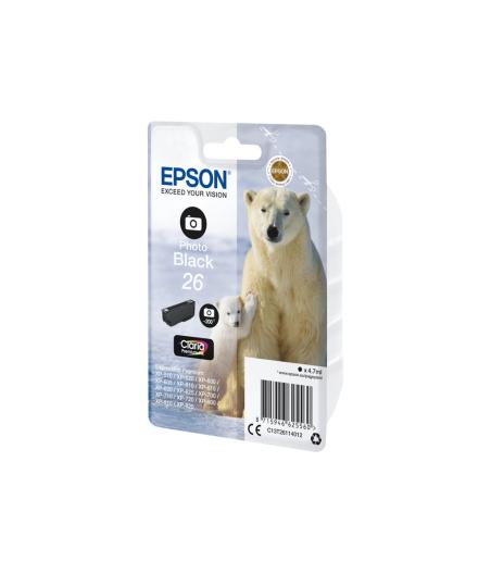 Epson 26 - 4.7 ml - photo noire - original - emballage coque avec alarme radioélectrique/ acoustique - cartouche d'encre - pour Expression Premium XP-510, 520, 600, 605, 610, 615, 620, 625, 700, 710, 720, 800, 810, 820