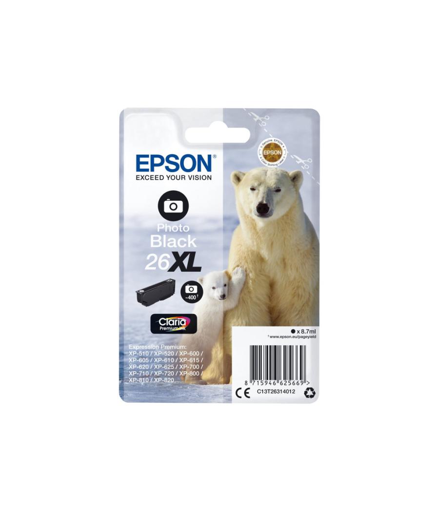 Epson 26XL - 8.7 ml - XL - photo noire - original - blister - cartouche d'encre - pour Expression Premium XP-510, 520, 600, 605, 610, 615, 620, 625, 700, 710, 720, 800, 810, 820