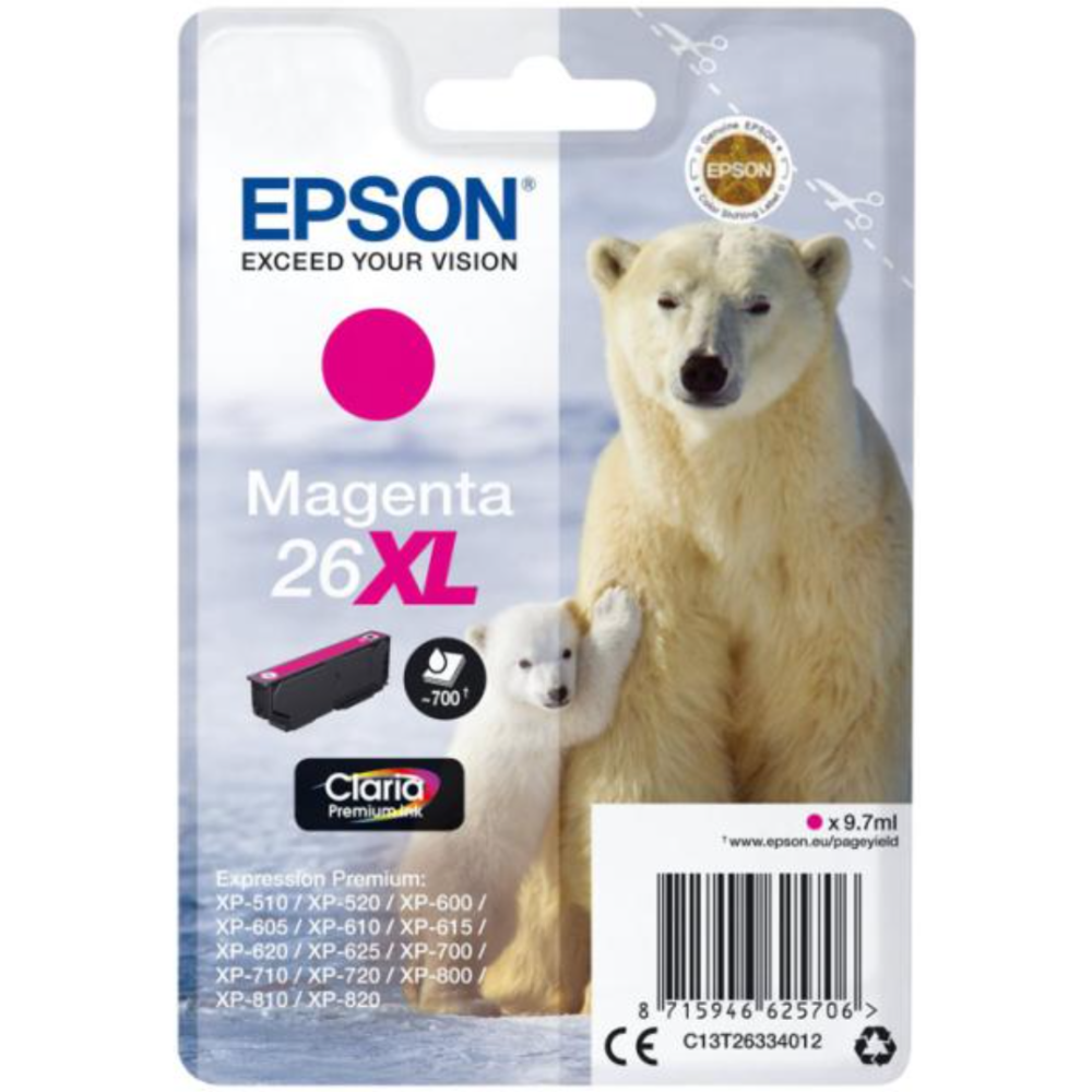 Epson 26XL - 8.7 ml - XL - magenta - original - blister - cartouche d'encre - pour Expression Premium XP-510, 520, 600, 605, 610, 615, 620, 625, 700, 710, 720, 800, 810, 820