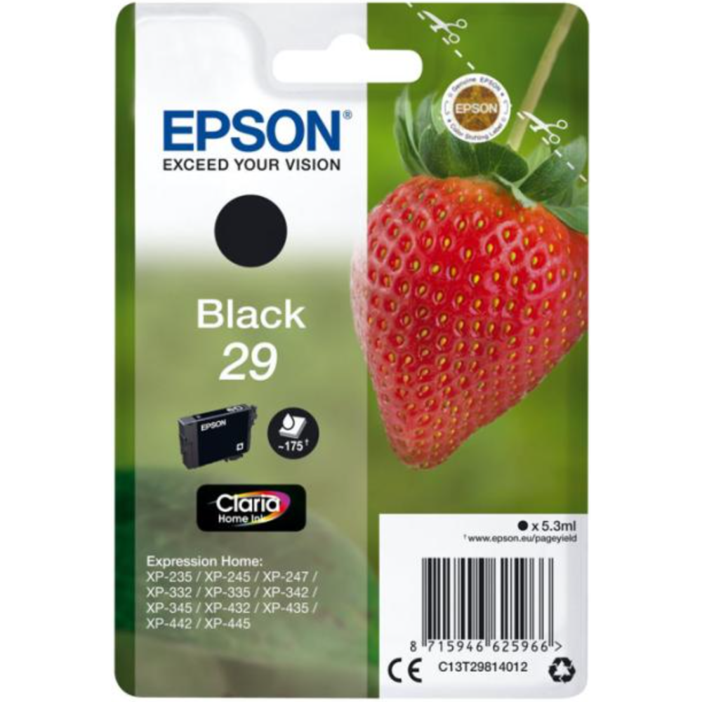 Epson 29 - 5.3 ml - noir - original - emballage coque avec alarme radioélectrique/ acoustique - cartouche d'encre - pour Expression Home XP-235, 245, 247, 255, 332, 335, 342, 345, 432, 435, 442, 445, 455