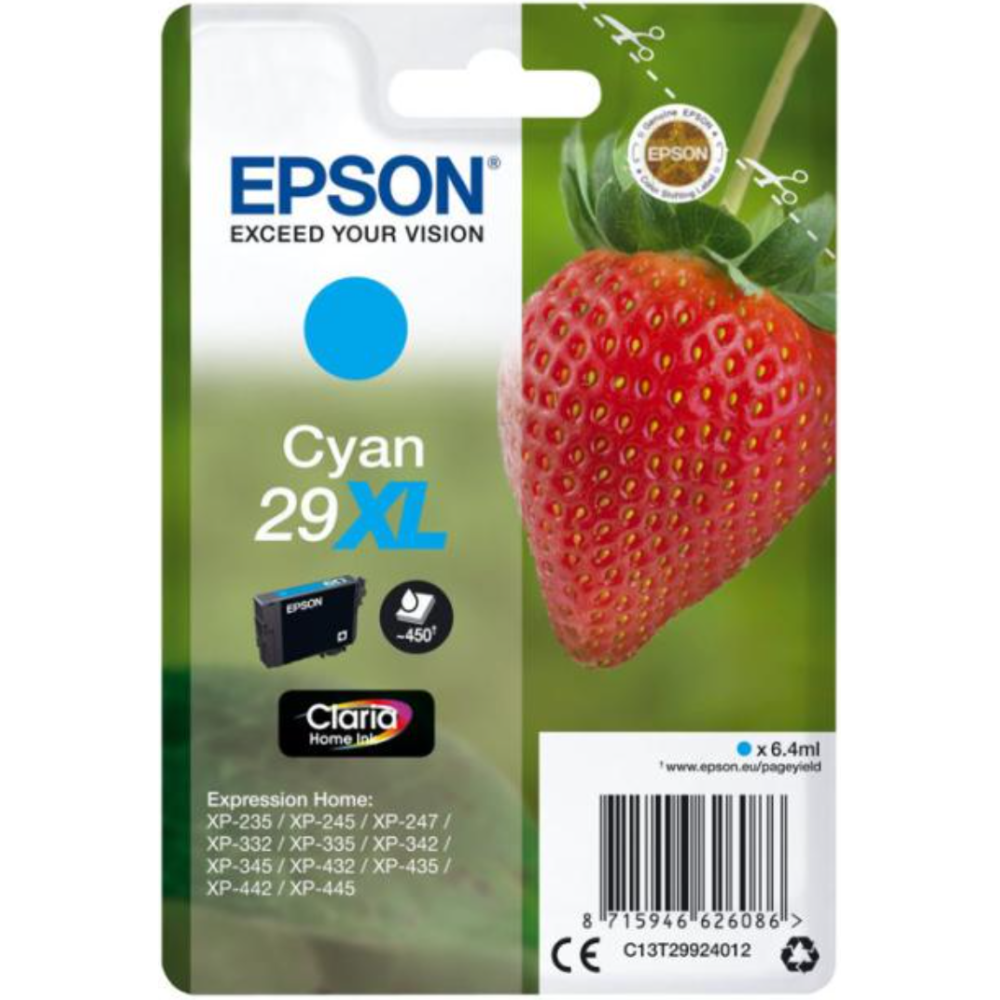 Epson 29XL - 6.4 ml - XL - cyan - original - blister - cartouche d'encre - pour Expression Home XP-245, 247, 255, 257, 332, 342, 345, 352, 355, 435, 442, 445, 452, 455