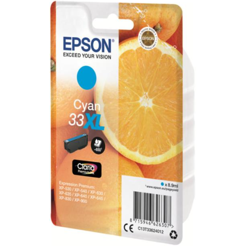 Epson 33XL - 8.9 ml - XL - cyan - original - blister - cartouche d'encre - pour Expression Home XP-635, 830; Expression Premium XP-530, 540, 630, 635, 640, 645, 830, 900