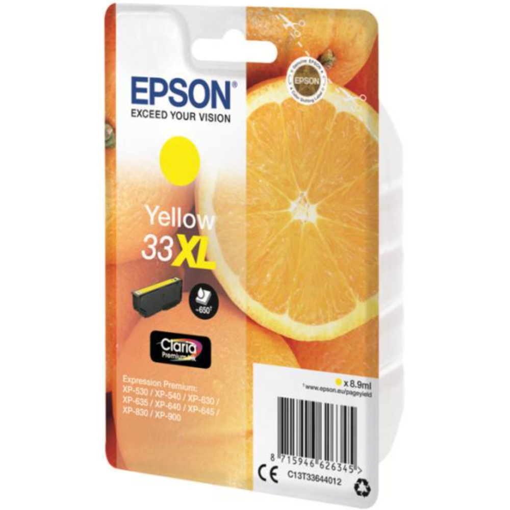 Epson 33XL - 8.9 ml - XL - jaune - original - blister - cartouche d'encre - pour Expression Home XP-635, 830; Expression Premium XP-530, 540, 630, 635, 640, 645, 830, 900