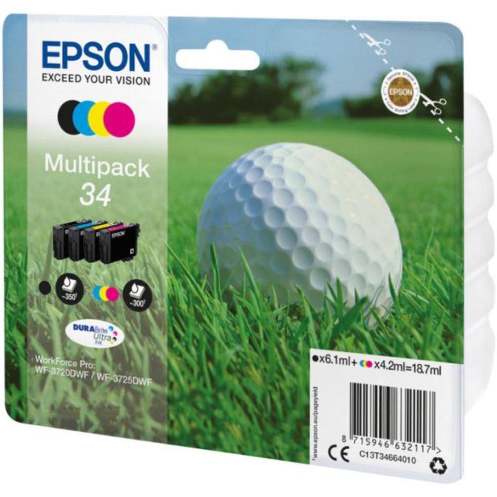 Epson 34 - Pack de 4 - noir, jaune, cyan, magenta - original - blister - cartouche d'encre - pour WorkForce Pro WF-3720, WF-3720DWF, WF-3725DWF