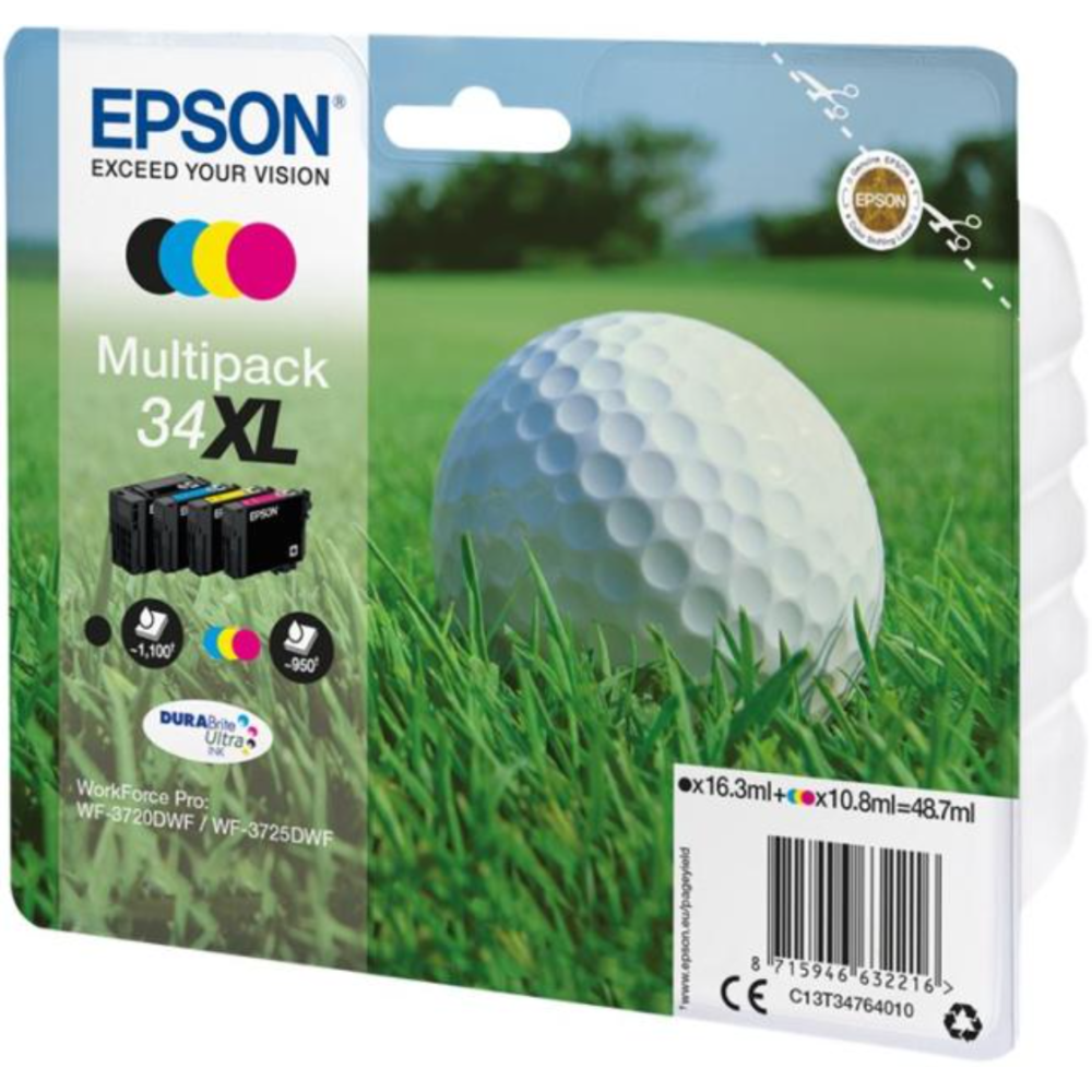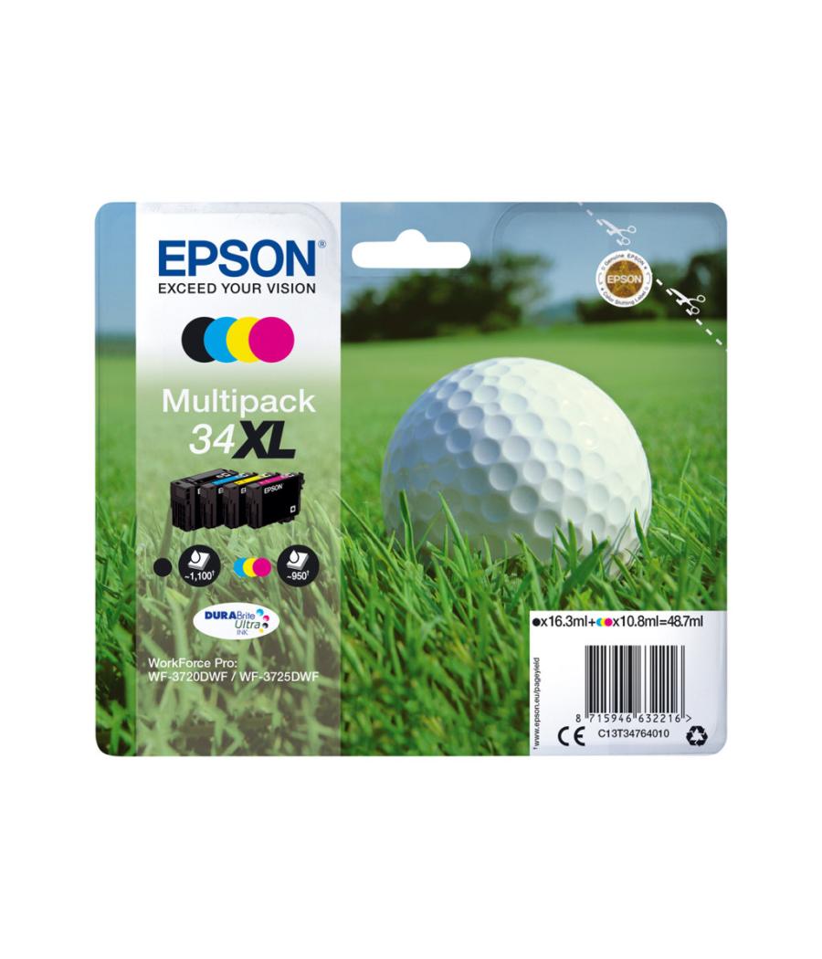 Epson 34XL - Pack de 4 - XL - noir, jaune, cyan, magenta - original - blister - cartouche d'encre - pour WorkForce Pro WF-3720, WF-3720DWF, WF-3725DWF