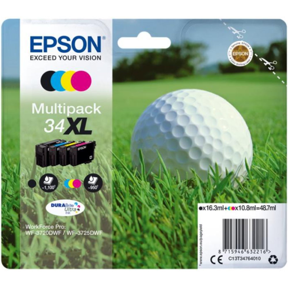 Epson 34XL - Pack de 4 - XL - noir, jaune, cyan, magenta - original - emballage coque avec alarme radioélectrique/ acoustique - cartouche d'encre - pour WorkForce Pro WF-3720DWF, WF-3725DWF