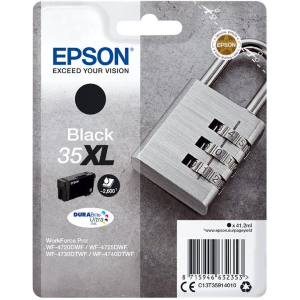 Epson 35XL - 41.2 ml - XL - noir - original - cartouche d'encre - pour WorkForce Pro WF-4720, WF-4720DWF, WF-4725DWF, WF-4730, WF-4730DTWF, WF-4740, WF-4740DTWF