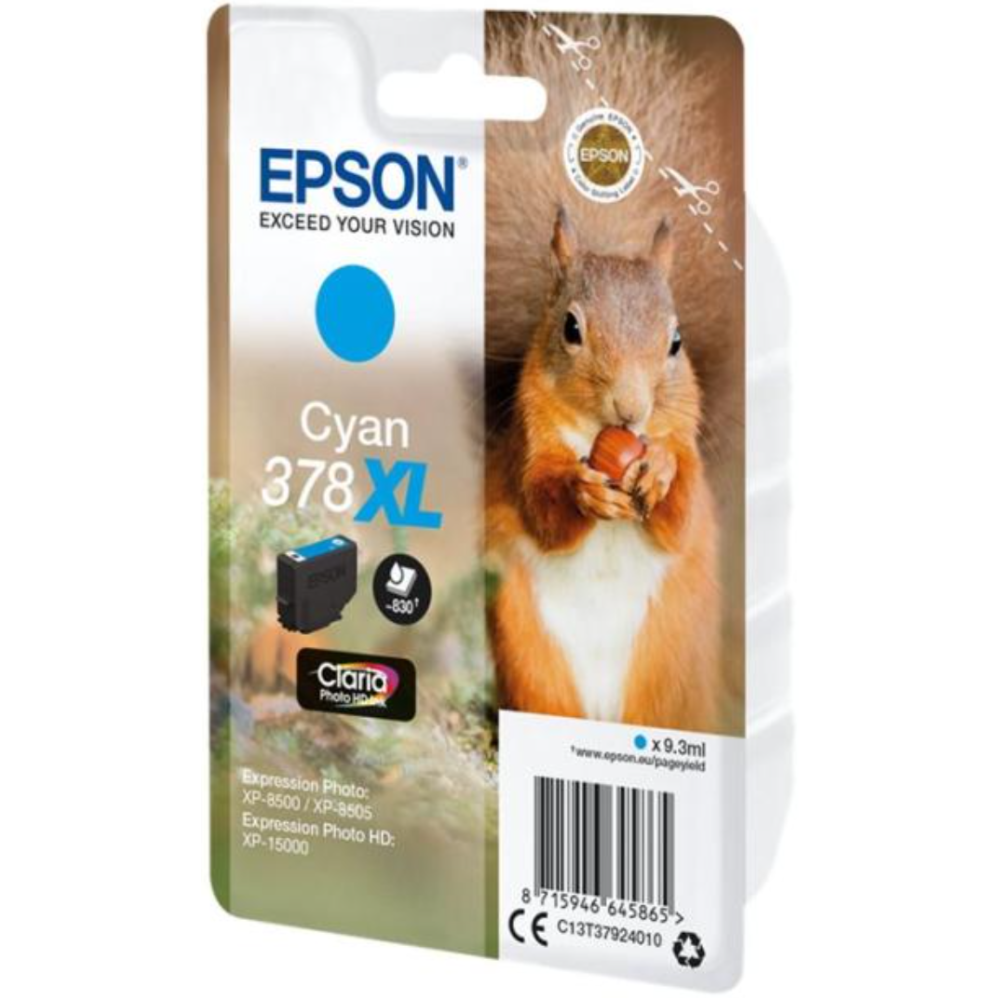 Epson 378XL - 9.3 ml - haute capacité - cyan - original - blister - cartouche d'encre - pour Expression Home XP-8605, 8606; Expression Home HD XP-15000; Expression Photo XP-8505, 8700