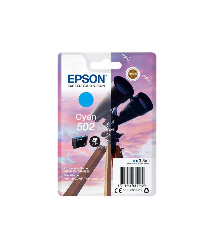 Epson 502 - 3.3 ml - cyan - original - blister - cartouche d'encre - pour Expression Home XP-5100, 5105, 5150, 5155; WorkForce WF-2860, 2865, 2880, 2885