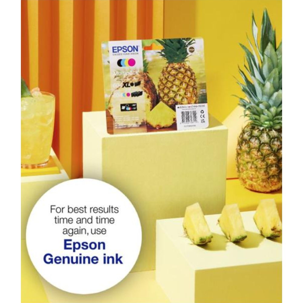 | Les encres quatre couleurs séparées d'Epson sont fiables et parfaitement adaptées à l'impression quotidienne. Une cartouche abordable est disponible pour chaque type d'utilisateur dans des tailles standard et très haute capacité proposées sous forme séparée ou en tant que multipacks. Identifiez-la facilement en magasin en recherchant le visuelAnanas. | |