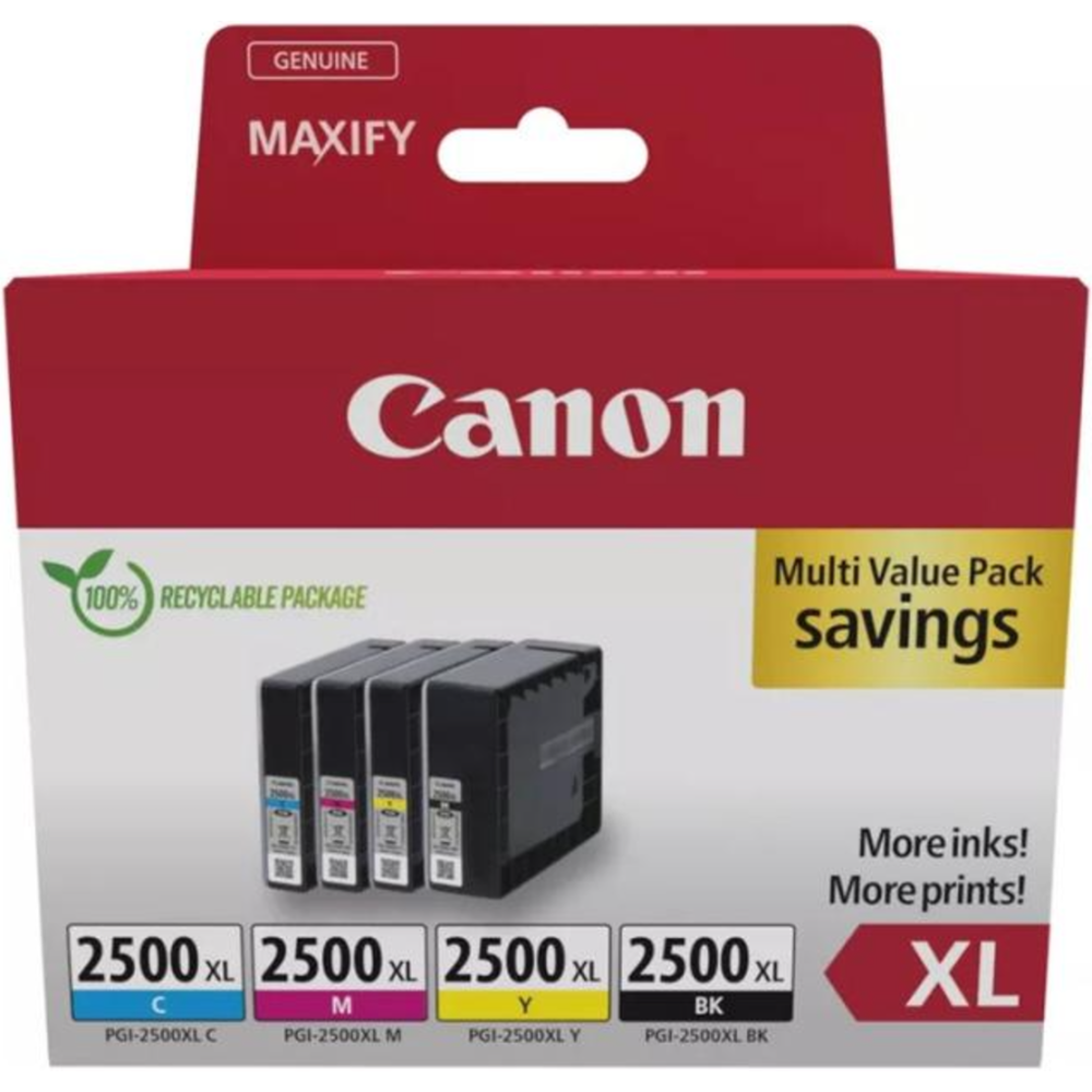 Canon PGI-2500XL BK/C/M/Y Multipack - Pack de 4 - XL - noir, jaune, cyan, magenta - original - réservoir d'encre - pour MAXIFY iB4050, iB4150, MB5150, MB5155, MB5350, MB5450