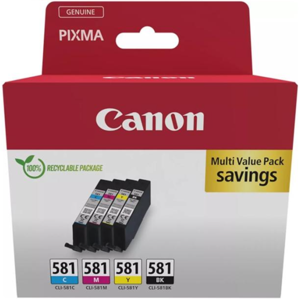 Canon CLI-581 BK/C/M/Y Multi Pack - Pack de 4 - 5.6 ml - noir, jaune, cyan, magenta - original - boîte - réservoir d'encre - pour PIXMA TS6251, TS6350, TS6351, TS705, TS8252, TS8350, TS8351, TS8352, TS9550, TS9551