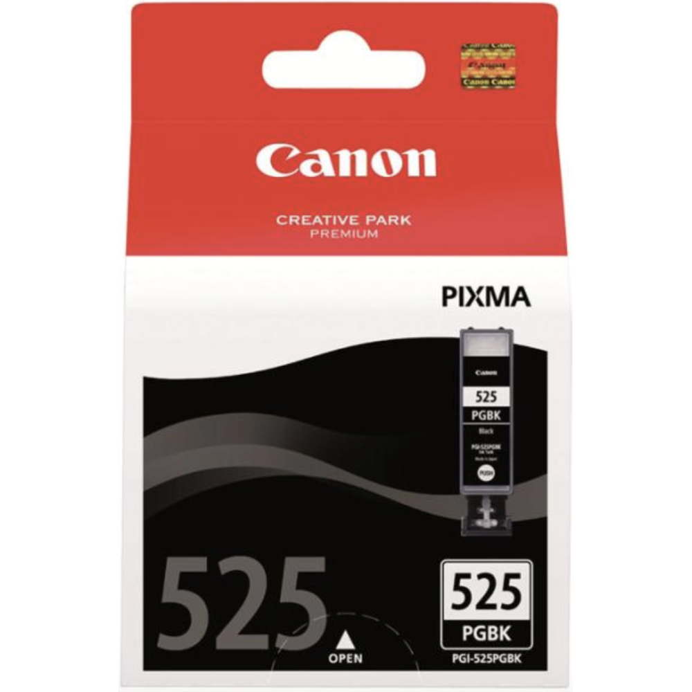 Cartouche d'encre Canon PGI-525PGBK - Couleur : Noir - Consommable pour imprimantes : PIXMA iP4950, iX6550, MG5350, MG6150, MG6250, MG8150, MG8250, MX715, MX885, MX892, MX895 - Capacité : 19 ml - Rendement : Jusqu'à 341 pages - EAN : 4960999454047.