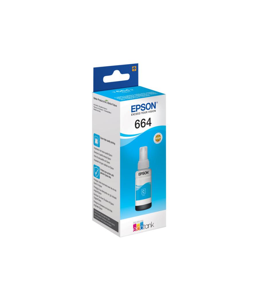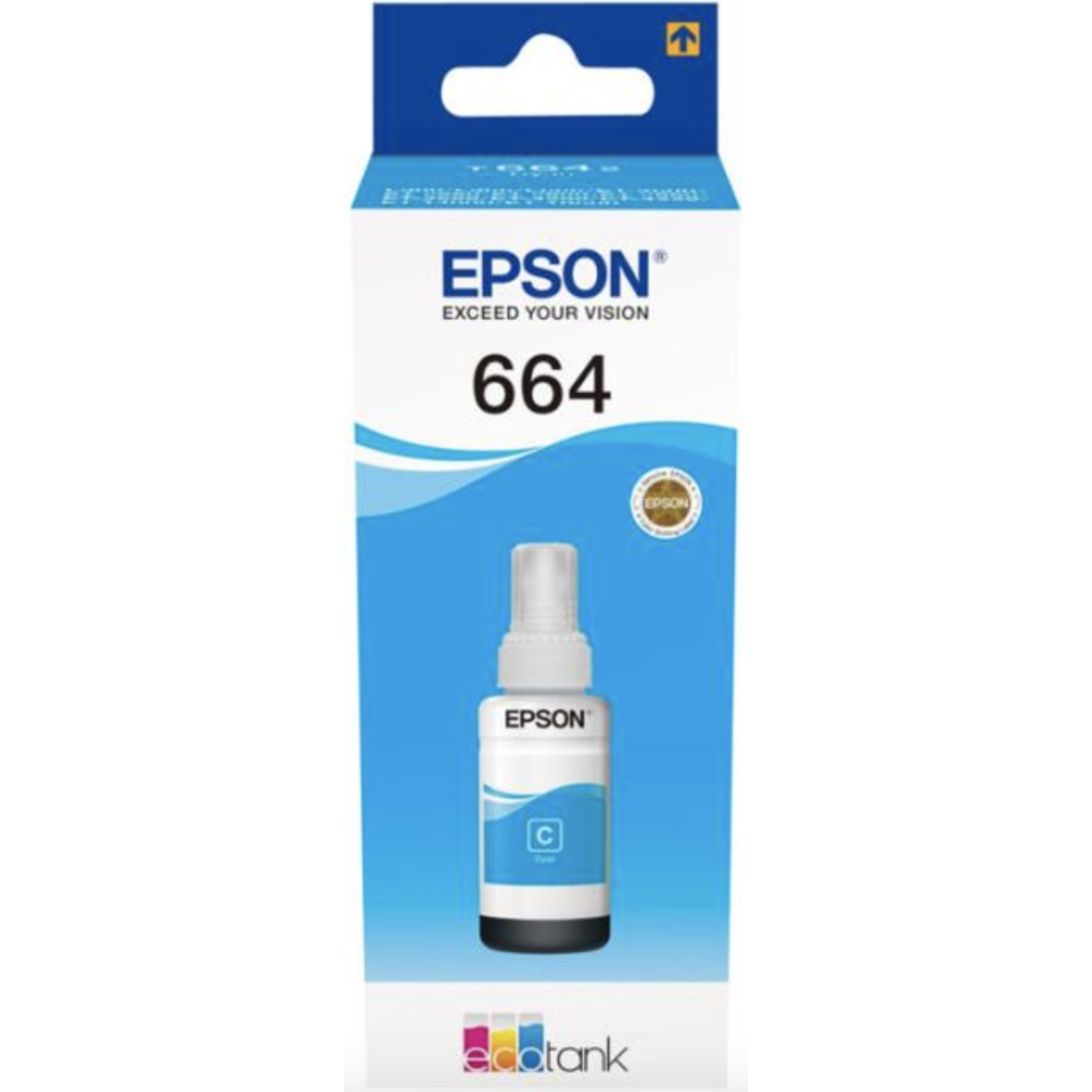 Cartouche d'encre Epson C13T664240 T6642 Original - Couleur : Cyan - Consommable pour imprimantes : EcoTank ET-14000, ET-16500, ET-2500, ET-2550, ET-2600, ET-2650, ET-3600, ET-4500, ET-4550 - Capacité : 70 ml - EAN : 8715946540986.