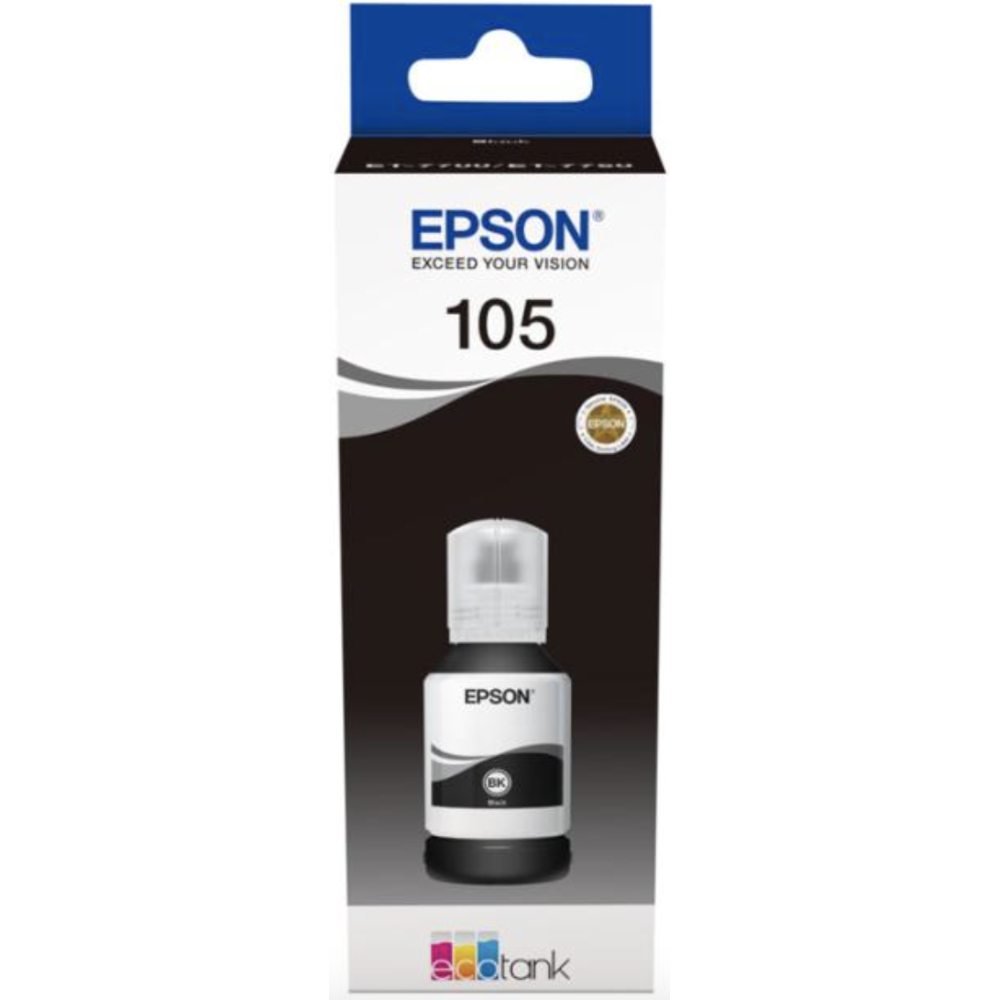 Cartouche d'encre Epson C13T00Q140 105 - Couleur : Noir - Consommable pour imprimantes : EcoTank ET-7700, ET-7750, L7160, L7180; Expression Premium ET-7700, ET-7750 - Capacité : 140 ml - EAN : 8715946643090.