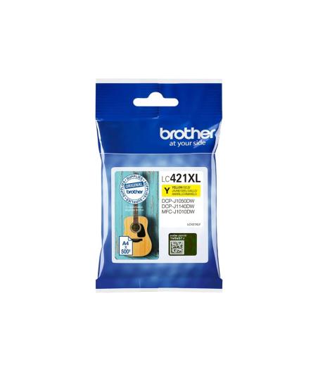 Cartouche toner Brother LC421XLY Original - Couleur : Jaune - Consommable pour imprimantes : Brother DCP-J1140DW, DCP-J1800DW, MFC-J1010DW, MFC-J1012DW - Rendement : Jusqu'à 500 pages - EAN : 4977766810432.