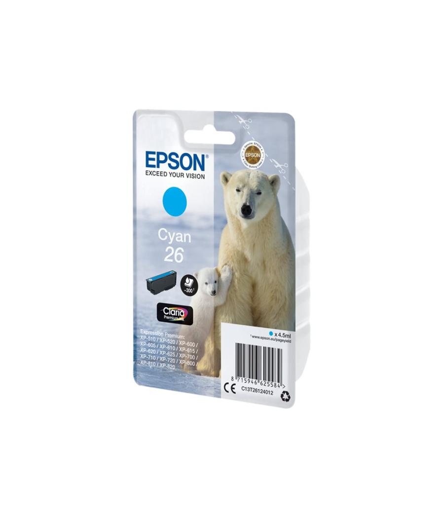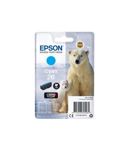 Epson 26 - 4.5 ml - cyan - original - blister - cartouche d'encre - pour Expression Premium XP-510, 520, 600, 605, 610, 615, 620, 625, 700, 710, 720, 800, 810, 820