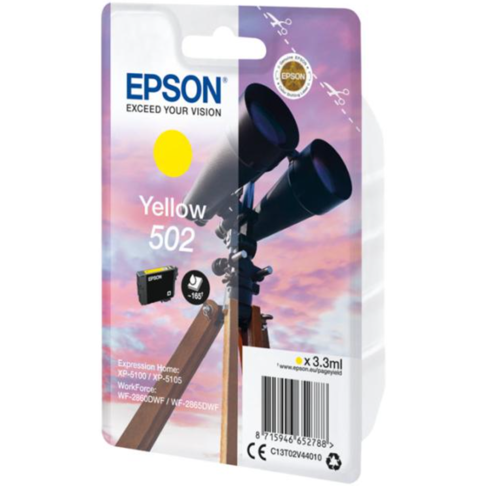 Epson 502 - 3.3 ml - jaune - original - blister - cartouche d'encre - pour Expression Home XP-5100, 5105, 5150, 5155; WorkForce WF-2860, 2865, 2880, 2885