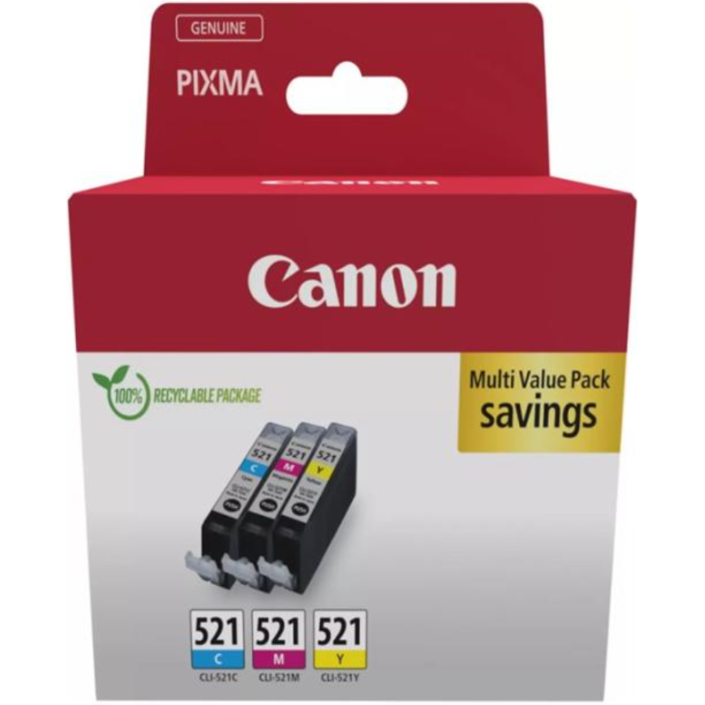 Canon CLI-521 C/M/Y Multi pack - Pack de 3 - 9 ml - jaune, cyan, magenta - original - réservoir d'encre - pour PIXMA iP3600, iP4700, MP540, MP550, MP560, MP620, MP630, MP640, MP980, MP990, MX860, MX870