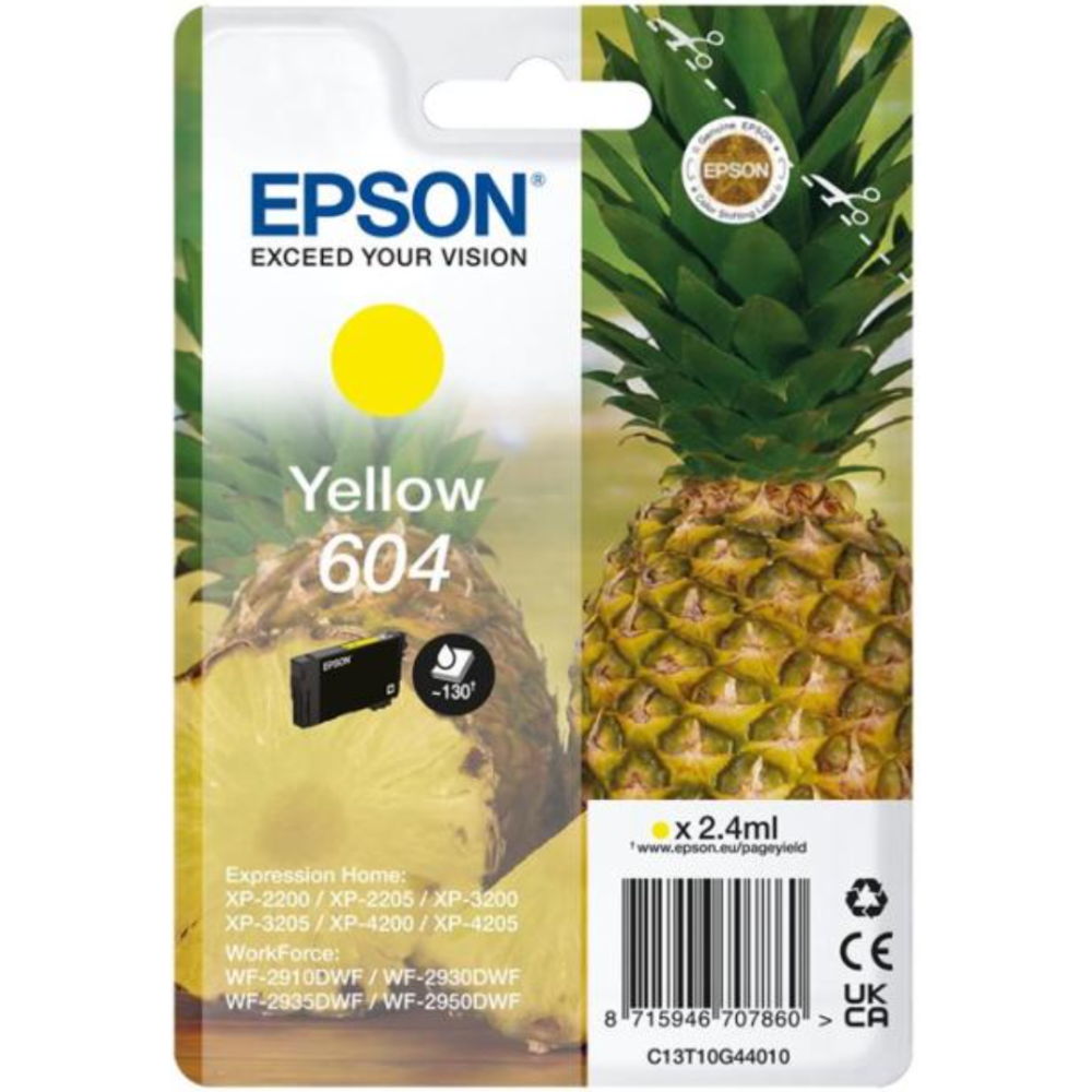 Epson 604 Singlepack - 2.4 ml - jaune - original - emballage coque avec alarme radioélectrique/ acoustique - cartouche d'encre - pour Expression Home XP-2200, 2205, 3200, 3205, 4200, 4205; WorkForce WF-2910, 2930, 2935, 2950