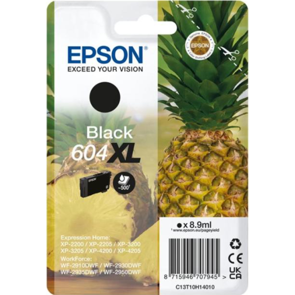 | Les encres quatre couleurs séparées d'Epson sont fiables et parfaitement adaptées à l'impression quotidienne. Une cartouche abordable est disponible pour chaque type d'utilisateur dans des tailles standard et très haute capacité proposées sous forme séparée ou en tant que multipacks. Identifiez-la facilement en magasin en recherchant le visuelAnanas. | |