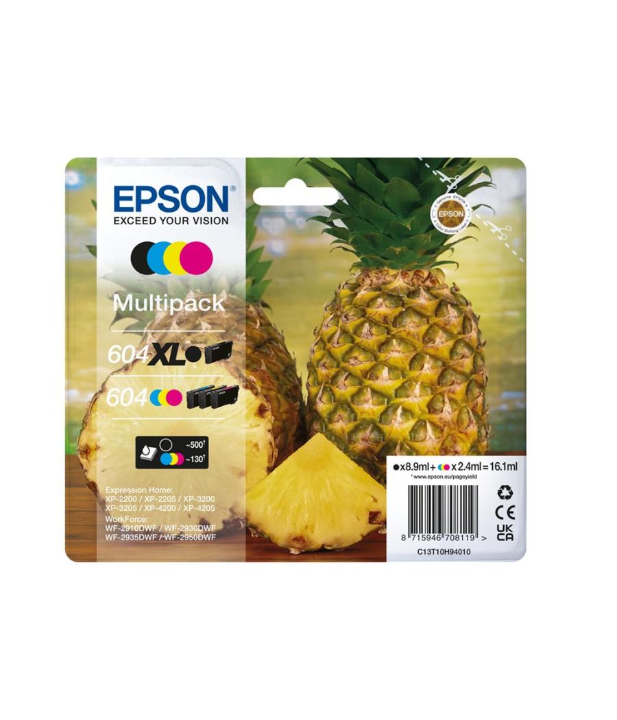 Epson 604/604XL Multipack - Pack de 4 - XL(noir) + Capacité standard - noir, jaune, cyan, magenta - original - emballage coque avec alarme radioélectrique/ acoustique - cartouche d'encre - pour Expression Home XP-2200, 2205, 3200, 3205, 4200, 4205; WorkForce WF-2910, 2930, 2935, 2950
