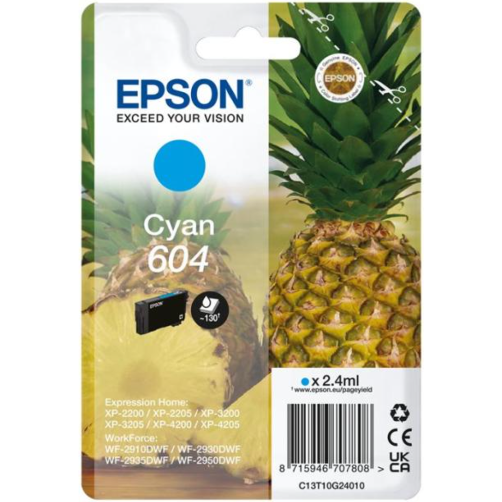 Epson 604 - 2.4 ml - cyan - original - emballage coque avec alarme radioélectrique/ acoustique - cartouche d'encre - pour Expression Home XP-2200, 2205, 3200, 3205, 4200, 4205; WorkForce WF-2910, 2930, 2935, 2950