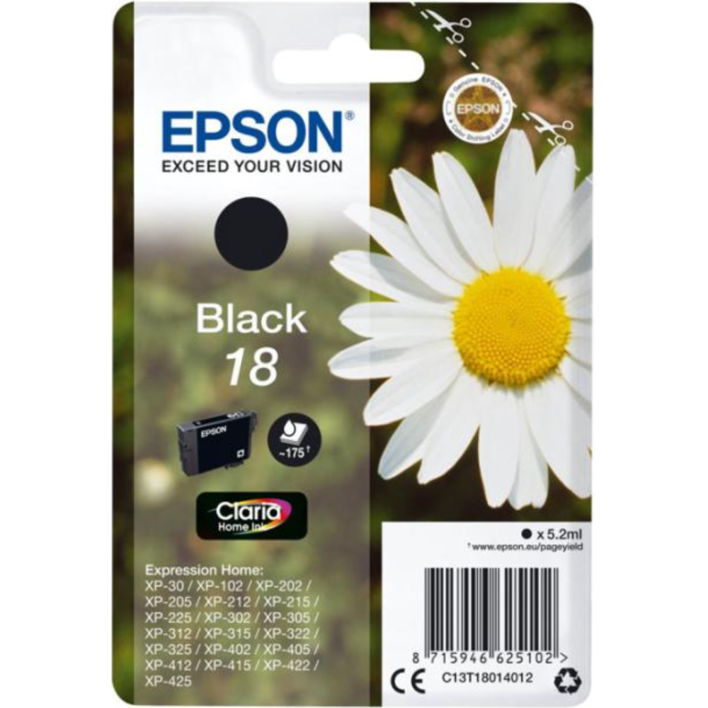 Epson 18 - 5.2 ml - noir - original - emballage coque avec alarme radioélectrique/ acoustique - cartouche d'encre - pour Expression Home XP-212, 215, 225, 312, 315, 322, 325, 412, 415, 422, 425