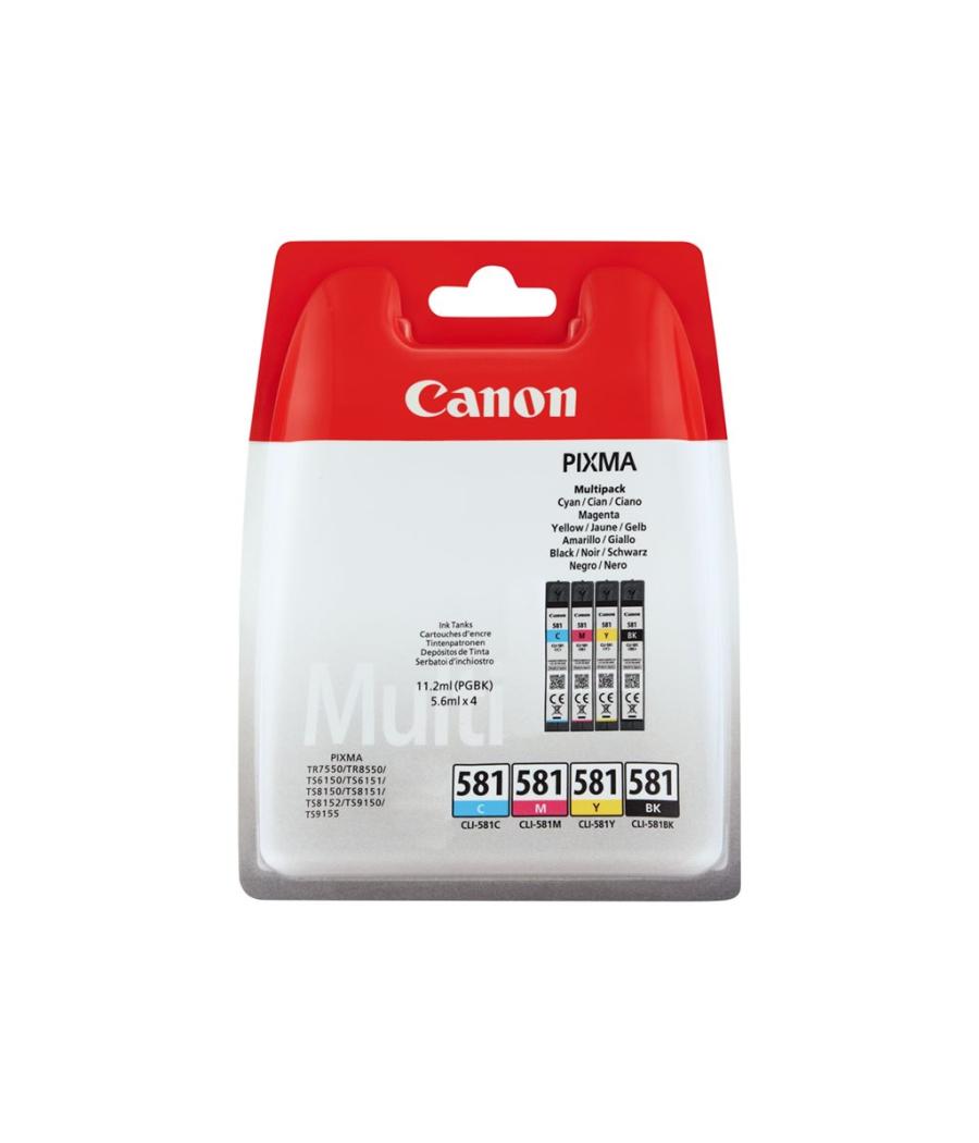 Pack de 4 cartouches d'encre Canon CLI-581 Multi Pack noir, jaune, cyan, magenta - 5.6 ml - original - boîte de suspension - réservoir d'encre - pour PIXMA TS6251, TS6350, TS6351, TS705, TS8252, TS8350, TS8351, TS8352, TS9550, TS9551.