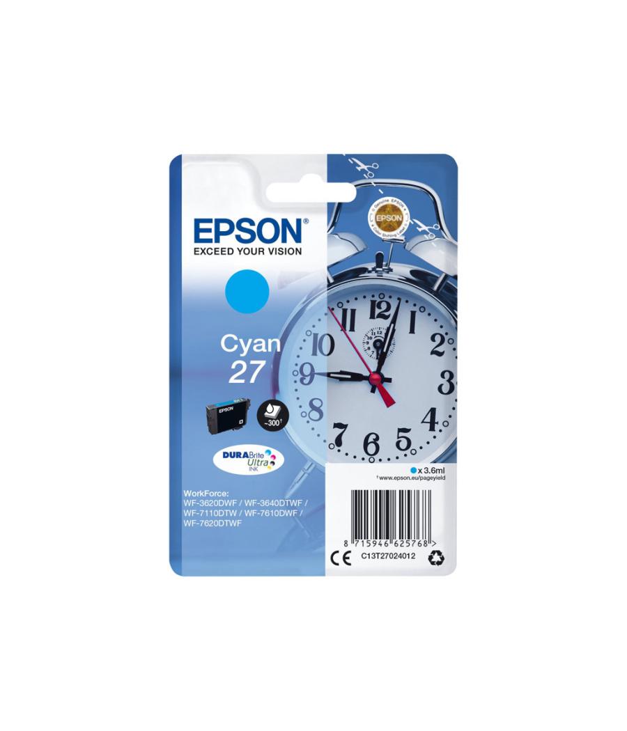 Epson 27 - 3.6 ml - cyan - original - emballage coque avec alarme radioélectrique/ acoustique - cartouche d'encre - pour WorkForce WF-3620, WF-3640, WF-7110, WF-7610, WF-7620, WF-7715, WF-7720