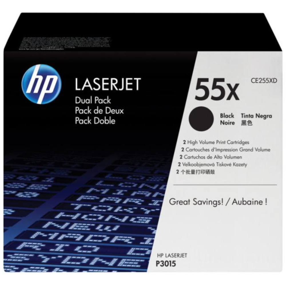 HP 55X - Pack de 2 - à rendement élevé - noir - original - LaserJet - cartouche de toner (CE255XD) - pour LaserJet Enterprise MFP M525; LaserJet Enterprise Flow MFP M525; LaserJet Managed MFP M525