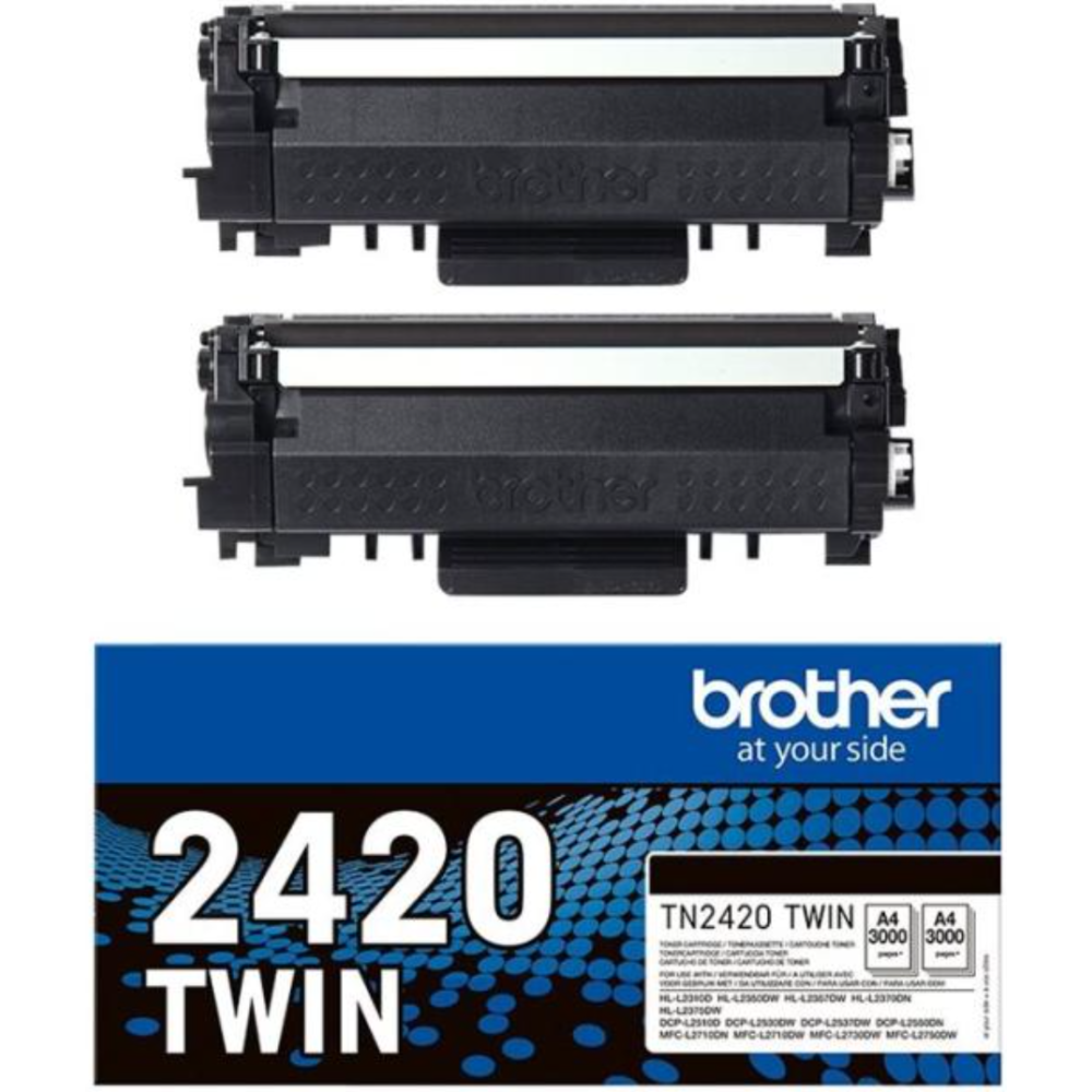 Brother TN2420 TWIN - Pack de 2 - à rendement élevé - noir - original - cartouche de toner - pour Brother DCP-L2510, L2530, L2537, L2550, HL-L2350, L2370, L2375, MFC-L2713, L2730, L2750