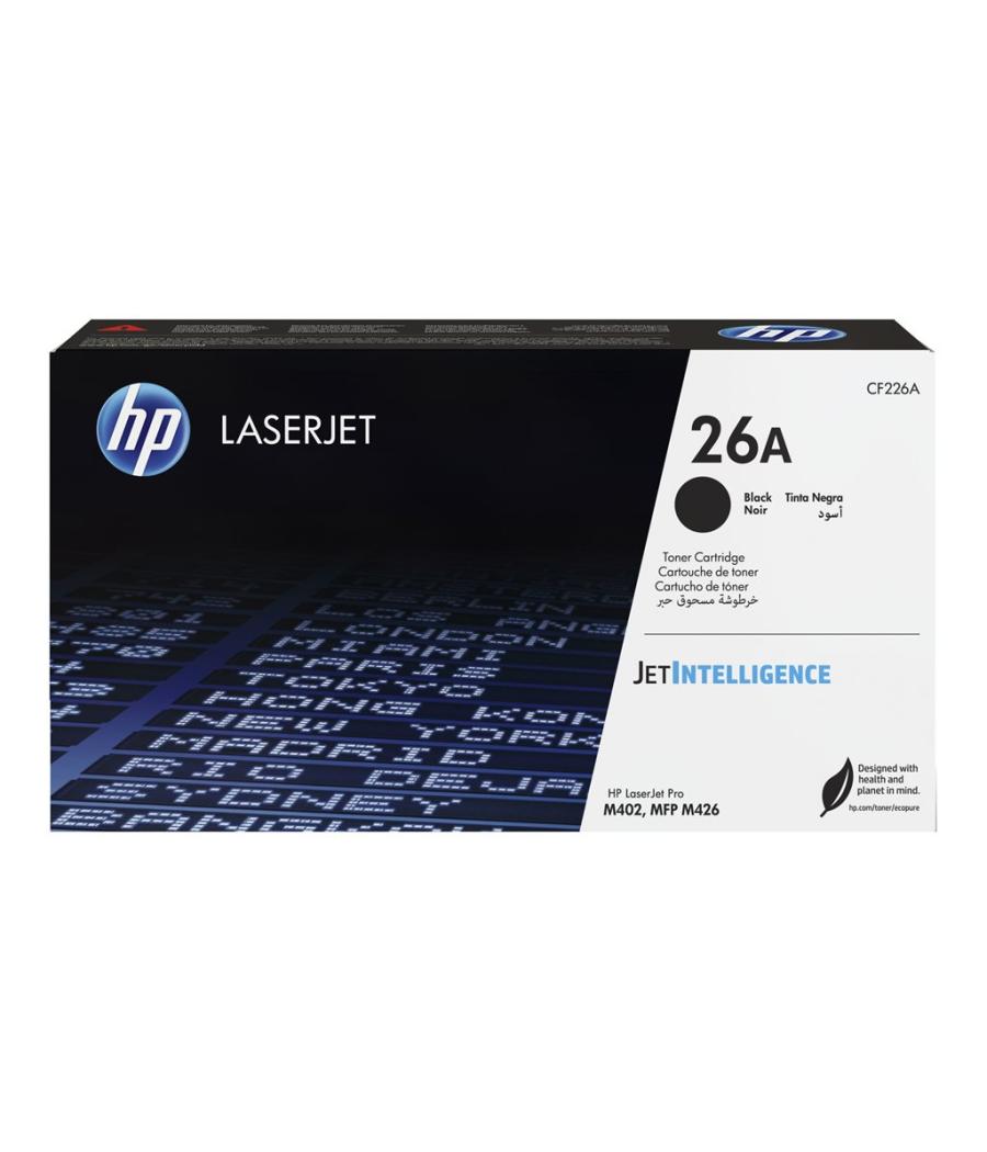 Cartouche toner HP CF226A 26A - Couleur : Noir - Consommable pour LaserJet Pro M402, MFP M426 - Rendement : Jusqu'à 3100 pages - EAN : 0889296154761.