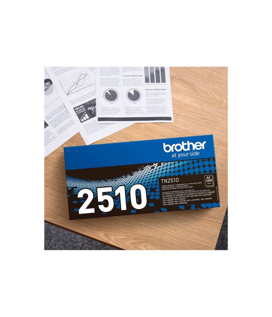 Cartouche toner Brother TN-2510 Original - Couleur : Noir - Consommable pour imprimantes : Brother DCP-L2620, L2627, L2660, HL-L2400, L2445, L2447, MFC-L2800, L2827, L2860 - Rendement : Jusqu'à 1200 pages - EAN : 4977766830270.