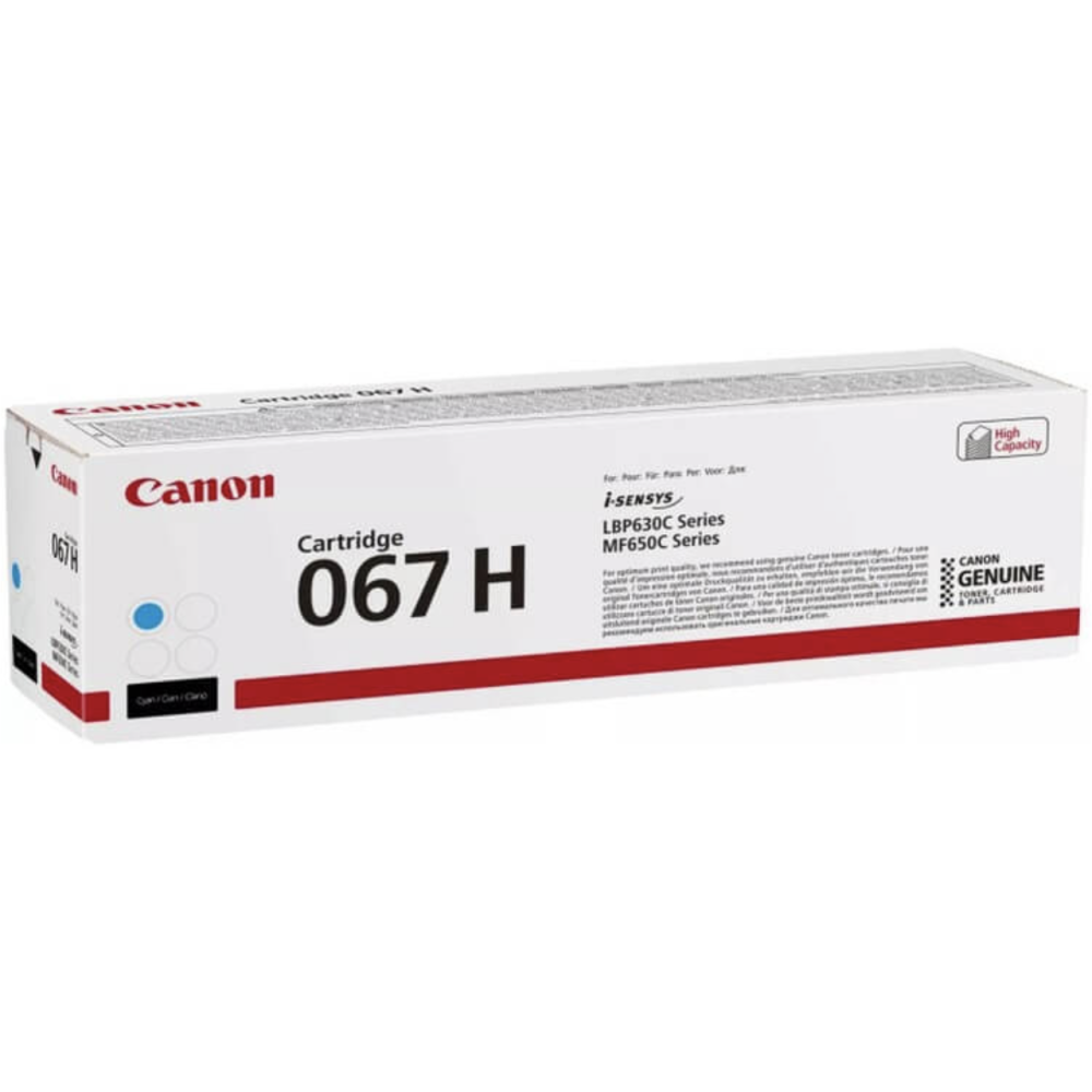 Cartouche de toner Canon 067H - Type : Cartouche de toner laser - Couleur : Cyan - Capacité : XL - Nombre de pages : Jusqu’à 2 350 pages (ISO/IEC 19798) - Cartouche d’origine : Oui (marque Canon) - Conditionnement : Pack de 1 - Compatibilité : Canon i-SENSYS LBP631CW, LBP633Cdw, MF651Cw, MF655Cdw, MF657Cdw - EAN : 4549292187656.
