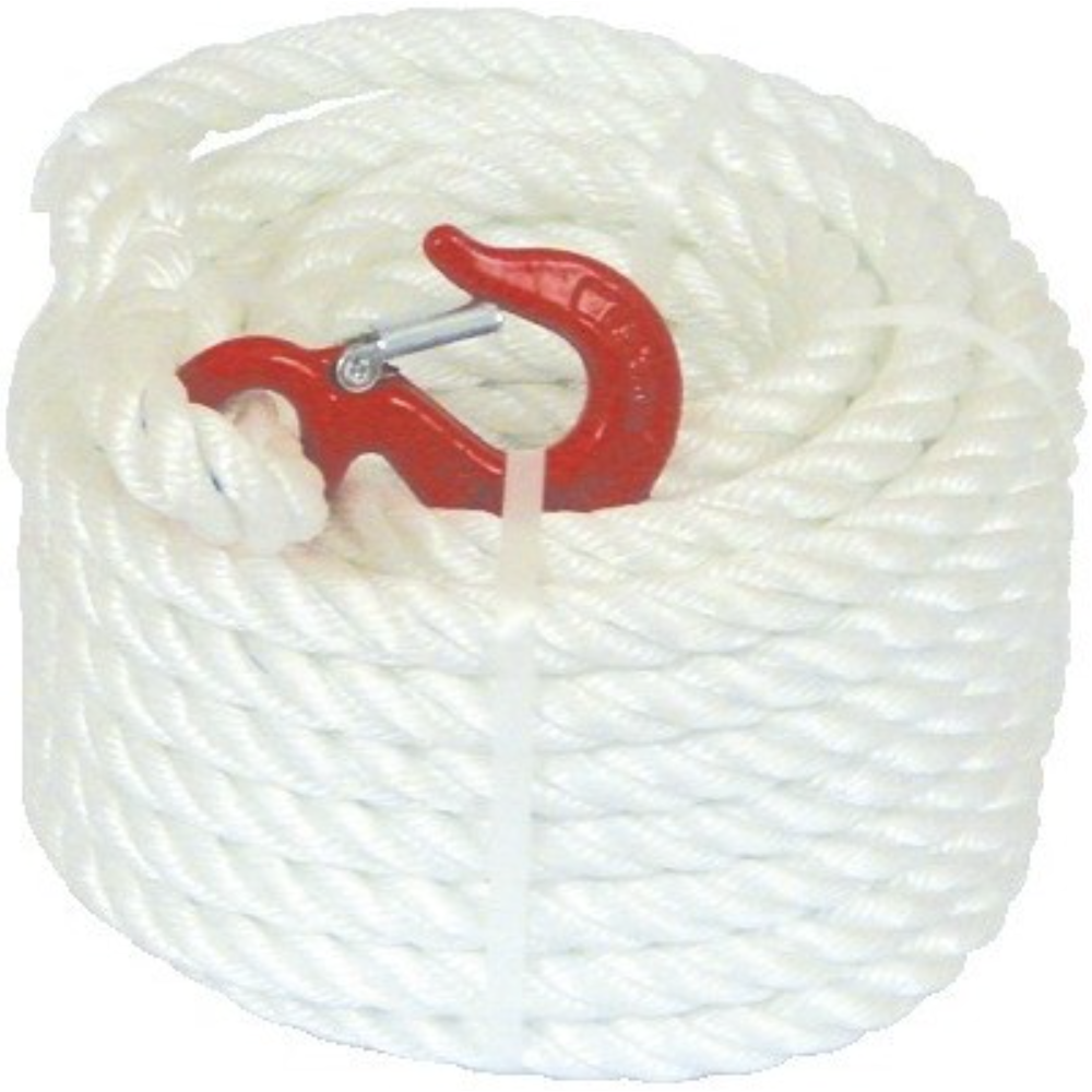Corde à poulie polypropylène Taliaplast 390402 - Longueur : 25 m - Diamètre : 20 mm - Boucle épissée avec crochet de levage et linguet de sécurité - Extrémité manchonnée - Charge maximale : 80 kg - EAN : 3375553904028.