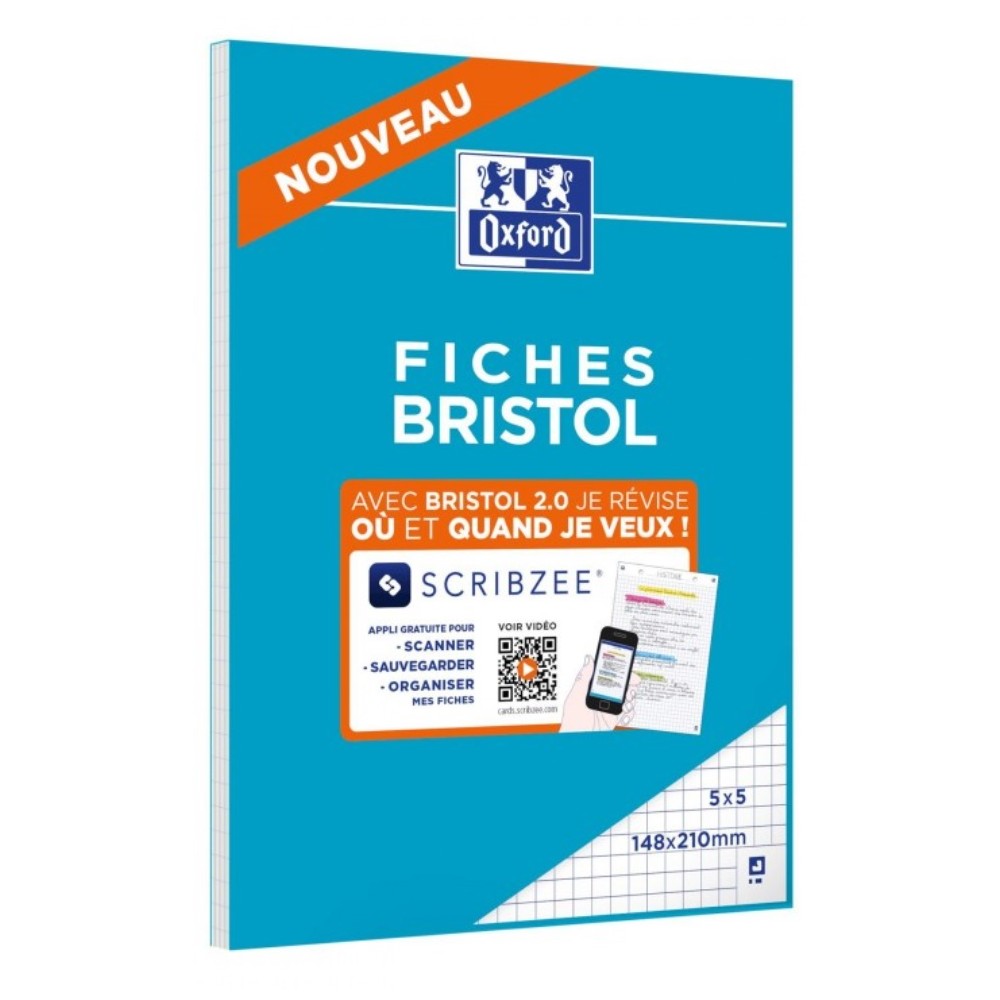 Révisez partout et à n'importe quel moment grâce à ce bloc de 30 feuilles Bristol 2.0 d'Oxford. Gardez vos notes et vos révisions toujours à portée de main sur votre smartphone ou tout autre appareil connecté. Les fiches bristol 2.0 d'Oxford sont compatibles avec l'application Scribzee qui vous permettra de sauvegarder vos notes prises dans le cloud d'Oxford. Elles seront donc disponibles quand et où vous le souhaitez depuis vos appareils connectés.