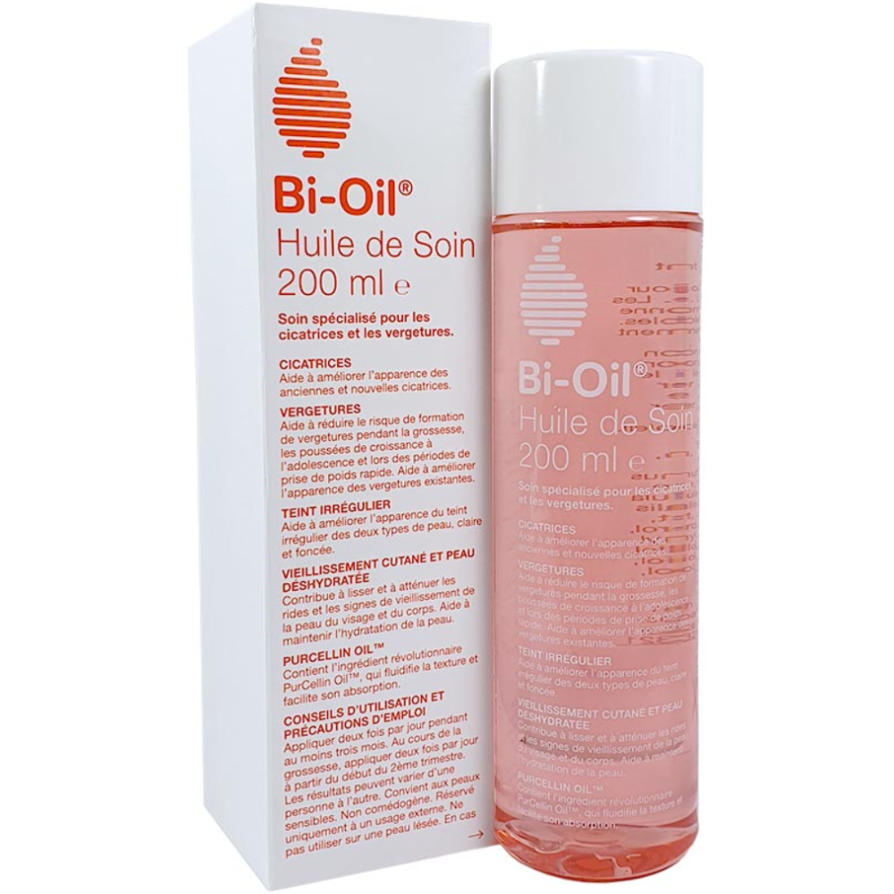 Huile de soin Bi-Oil très efficace contre les signes de vieillissement et la déshydratation de la peau - Formulée à base de Pur Cellin Oil, elle aide à améliorer l'apparence des cicatrices, des vergetures et des imperfections cutanées - Aide à faciliter l'absorption par la peau des bienfaits contenus dans sa formule en vitamine A et E et huiles végétales naturelles (lavande, romarin et camomille) - Redonne un aspect plus lisse et uniforme au teint - Bénéficie d'une formule hypoallergénique et d'une texture non grasse - Convient à tous les types de peau pour une application sur le visage et sur le corps - Les femmes enceintes peuvent l'utiliser à partir du deuxième trimestre de grossesse - Livrée dans un flacon de 200ml.