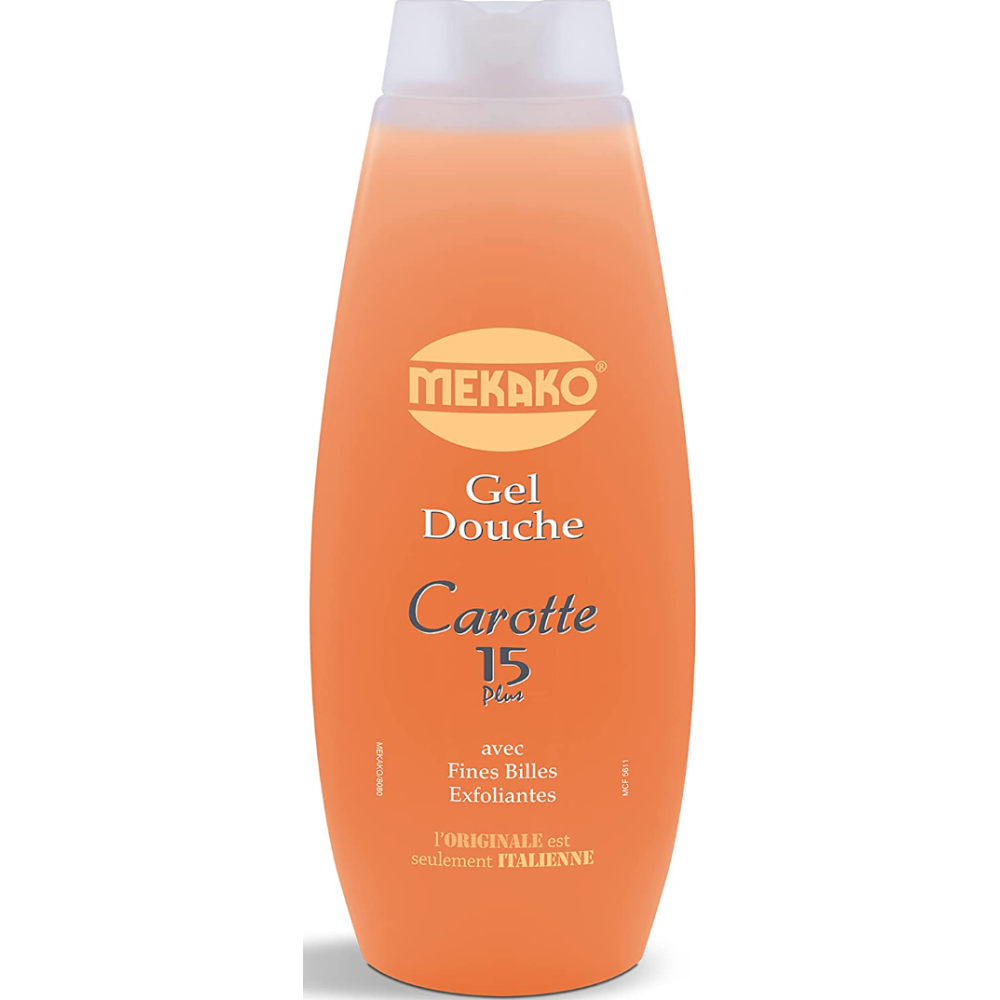 Gel douche Mekako carotte 15 Plus de 510 ml de contenance - Idéal pour les peaux normales et grasses - Gel parfumé exfoliant à l'huile de carotte avec micro-granulés cireux - Nettoie et exfolie parfaitement et en profondeur - Elimine les cellules mortes qui étouffent la peau - Favorise une peau lisse, jeune, lumineuse, souple tonique et resplendissante - Fragrance douce et délicieuse - Recommandé uniquement aux adultes - Ingrédients: Aqua, sodium laureth sulfate, cocamide dea, parfum (fragrance), cocamidopropyl betaine, glycerin, C12-13 Alkyl lactate, daucus carota sativa root extract (daucus carota sativa carrot root extract), hydrolyzed collagen, synthetic wax, acrylates/C10-13 alkyl acrylate crosspolymer, disodium edta, propylene glycol, buteth-3, magnesium nitrate, sodium benzotriazolyl butylphenol sulfonate, alcohol, triethanolamine, tris (tetramethylhydroxypiperidinol) citrate, tributyl citrate, methychloroisothiazolinone, magnesium chloride, methylisothiazolinone, CI 17200 (d&c red n°33), CI 1914 (yellow 5), benzyl benzoate, linalool, limonene, eugenol, hexyl cinnamal, citral.