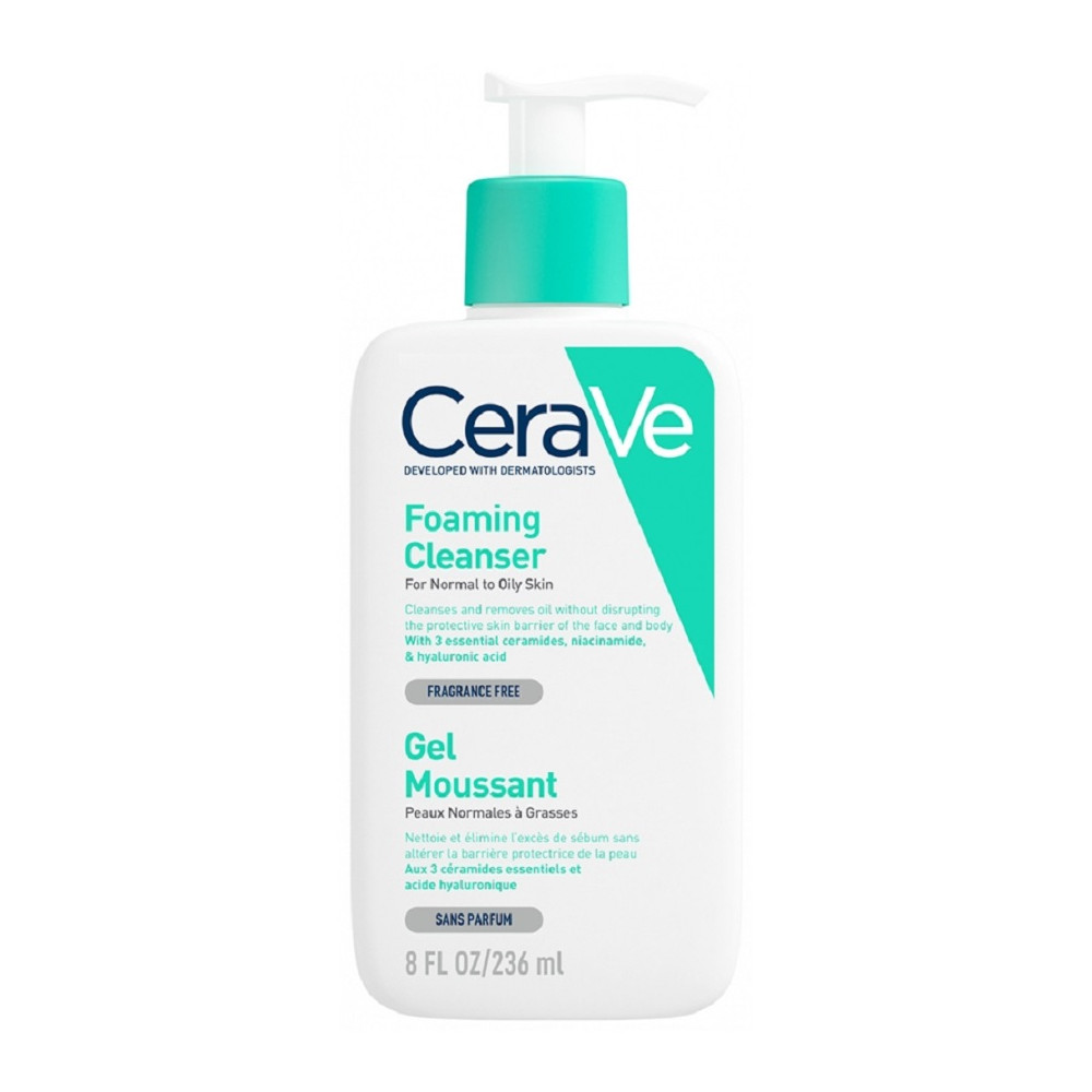Gel moussant CeraVe idéal pour les peaux normales à grasses - Nettoie et purifie la peau en profondeur sans altérer la barrière cutanée grâce à sa formule enrichie aux 3 céramides essentiels et à l'acide hyaluronique -  Élimine efficacement l'excès de sébum, les impuretés et le maquillage pour un fini peau douce - Propose une texture fraîche et moussante pour une application sur le visage et le cou. Composition : Aqua (Water), Cocamidopropyl Hydroxysultaine, Glycerin, Sodium Lauroyl Sarcosinate, Propanediol, PEG-150 Pentaerythrityl Tetrastearate, Niacinamide, PEG-6 Caprylic/Capric Glycerides, Ceramide NP, Ceramide AP, Ceramide EOP, Carbomer, Sodium Methyl Cocoyl Taurate, Sodium Benzoate, Sodium Chloride, Sodium Lauroyl Lactylate, Sodium Hyaluronate, Cholesterol, Phenoxyethanol, Disodium EDTA, Citric Acid, Tetrasodium EDTA, Phytosphingosine, Xanthan Gum, Ethylhexylglycerin.