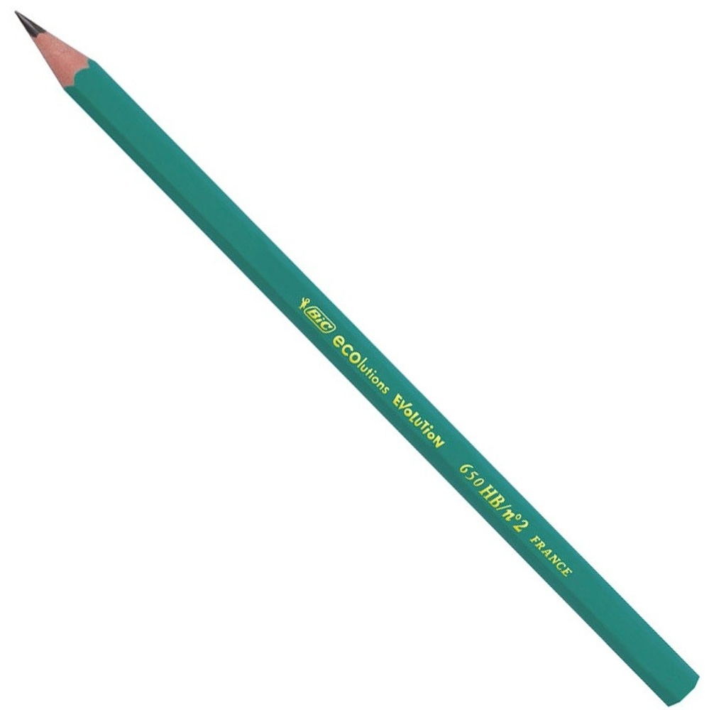 Crayon graphite HB Ecolution BIC - Crayon à papier sans bois donc plus résistant ! - Corps hexagonal - En résine à base de matériaux recyclés - Pas d'écharde en cas de bris - Mine HB ultra résistante - Tête coupée (650)