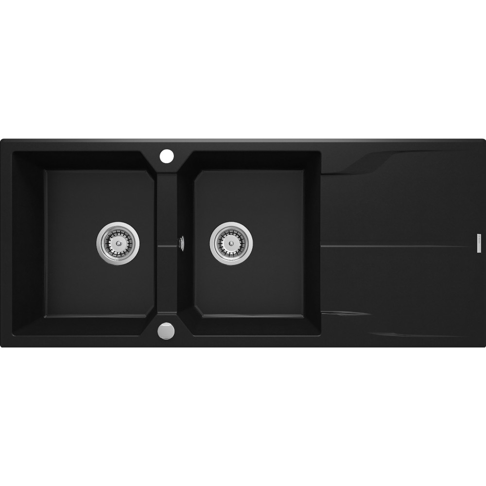Evier de cuisine ANDANTE ZQNN213 en granit avec 2 bacs avec égouttoir - Propriétés du granit Deante : résistance aux chocs, haute température, décoloration, choc thermique - avec norme EN 13310 - Méthode de montage: encastré - Dimension (Lxlxh) : 116x50x22.4cm - Couleur : Nero