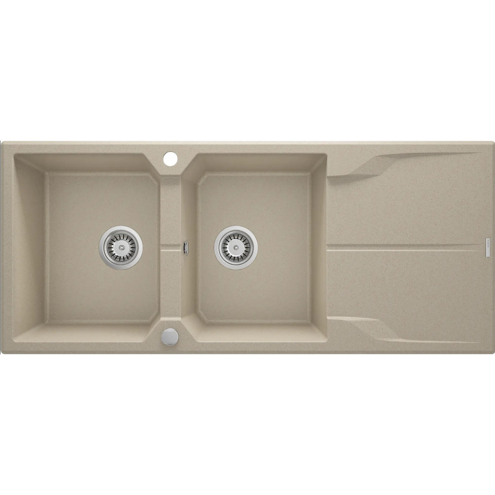 Evier de cuisine ANDANTE ZQN7213 en granit avec 2 bacs avec égouttoir - Propriétés du granit Deante : résistance aux chocs, haute température, décoloration, choc thermique - avec norme EN 13310 - Méthode de montage: encastré - Dimension (Lxlxh) : 116x50x22.4cm - Couleur : Sable