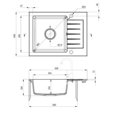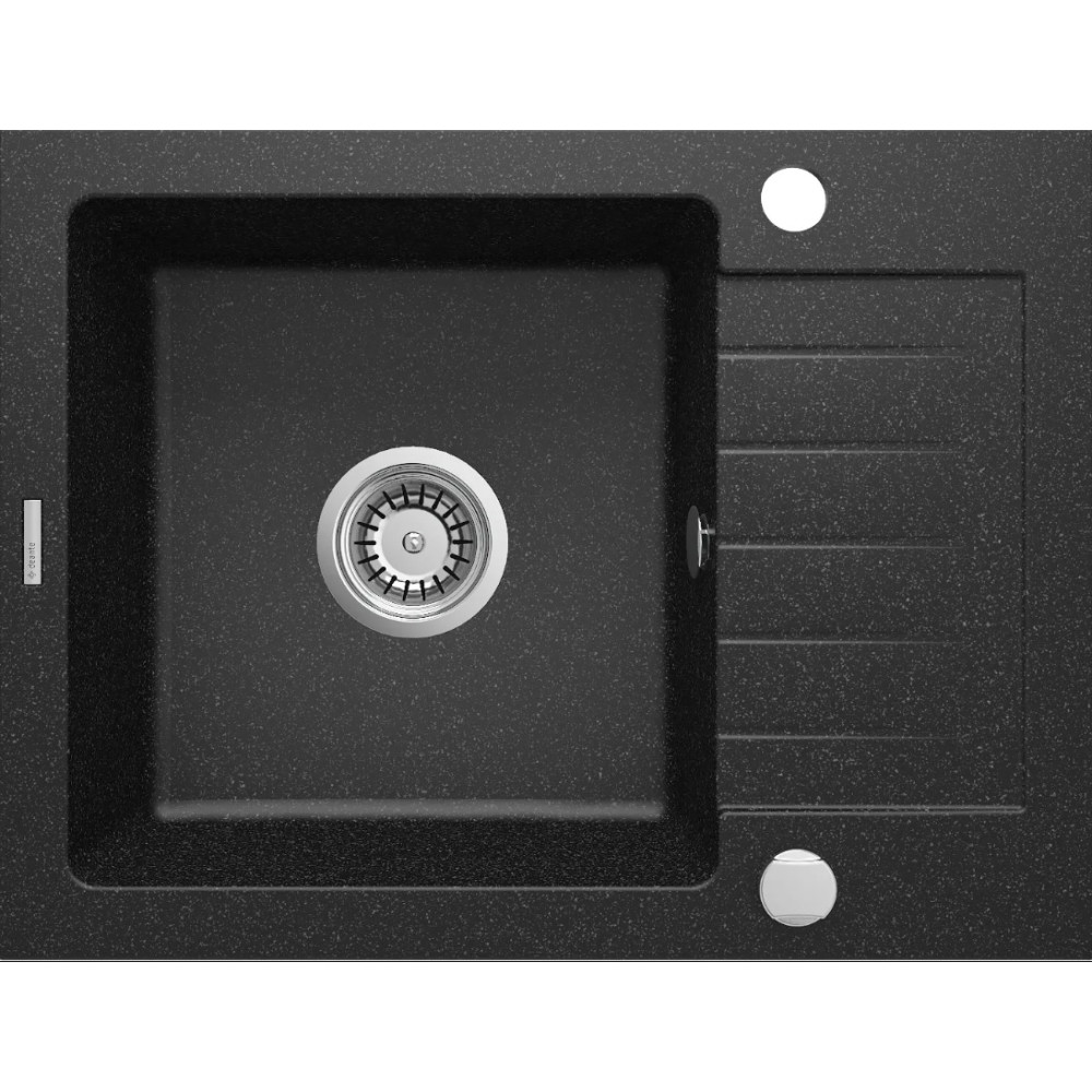 Evier de cuisine ZORBA ZQZ211A en granit avec 1 bac avec égouttoir - Propriétés du granit Deante : résistance aux chocs, haute température, décoloration, choc thermique - avec norme EN 13310 - Méthode de montage: encastré - Dimension (Lxlxh) : 58x44x16.4cm - Couleur : graphite