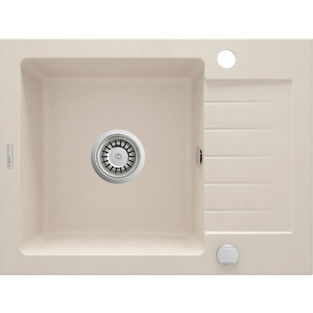 Evier de cuisine ZORBA ZQZ511A en granit avec 1 bac avec égouttoir - Propriétés du granit Deante : résistance aux chocs, haute température, décoloration, choc thermique - avec norme EN 13310 - Méthode de montage: encastré - Dimension (Lxlxh) : 58x44x16.4cm - Couleur : beige