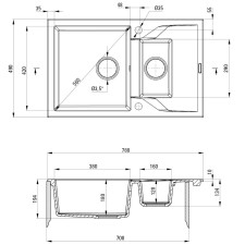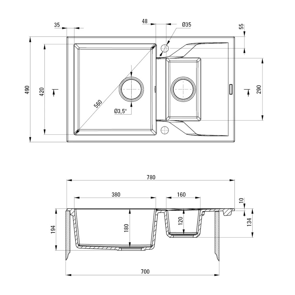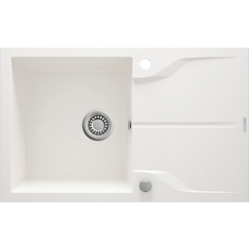 Evier de cuisine ANDANTE ZQNA113 en granit avec 1 bac avec égouttoir - Propriétés du granit Deante : résistance aux chocs, haute température, décoloration, choc thermique - avec norme EN 13310 - Méthode de montage: encastré - Dimension (Lxlxh) : 78x49x19.4cm - Couleur : alabaster