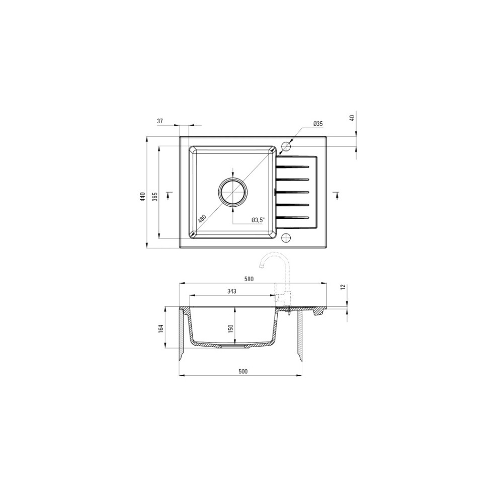Evier de cuisine ZORBA ZQZA11A en granit avec 1 bac avec égouttoir - Propriétés du granit Deante : résistance aux chocs, haute température, décoloration, choc thermique - avec norme EN 13310 - Méthode de montage: encastré - Dimension (Lxlxh) : 58x44x16.4cm - Couleur : alabaster