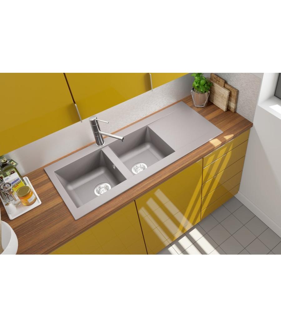 EVIER ENCASTRABLE EINNA-SMC-GRIS 2 BACS - GRIS BETON