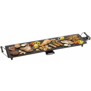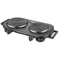 Elle dispose d'une protection anti-surchauffe, d'un thermostat réglable et d'un témoin lumineux de chauffe. Ultra pratique à ranger grâce à ses poignés pliables, elle n'encombrera pas votre cuisine une fois utilisée. Légère, son poids n'excède pas 3,86 kilos, vous pourrez ainsi la transporter facilement lors de vos vacances en camping ! Informations techniques. Dimensions : - largeur : 24 cm - hauteur : 8,7 cm - longueur : 47,5 cm - diamètres des plaques de cuisson : 18,5 cm et 15,5 cm - Cordon Électrique : environ 90 cm. Poids : 3,86 kg. Coloris : noir. Puissance : 2500 w. Alimentation : 220-240 v ~ 50/60 hz. Accessoires : 4 pieds stabilisateurs. Protection anti-surchauffe. Thermostat réglable. Poignés pliables. Témoin lumineux de chauffe.